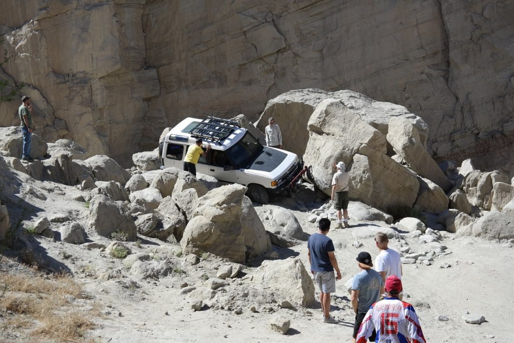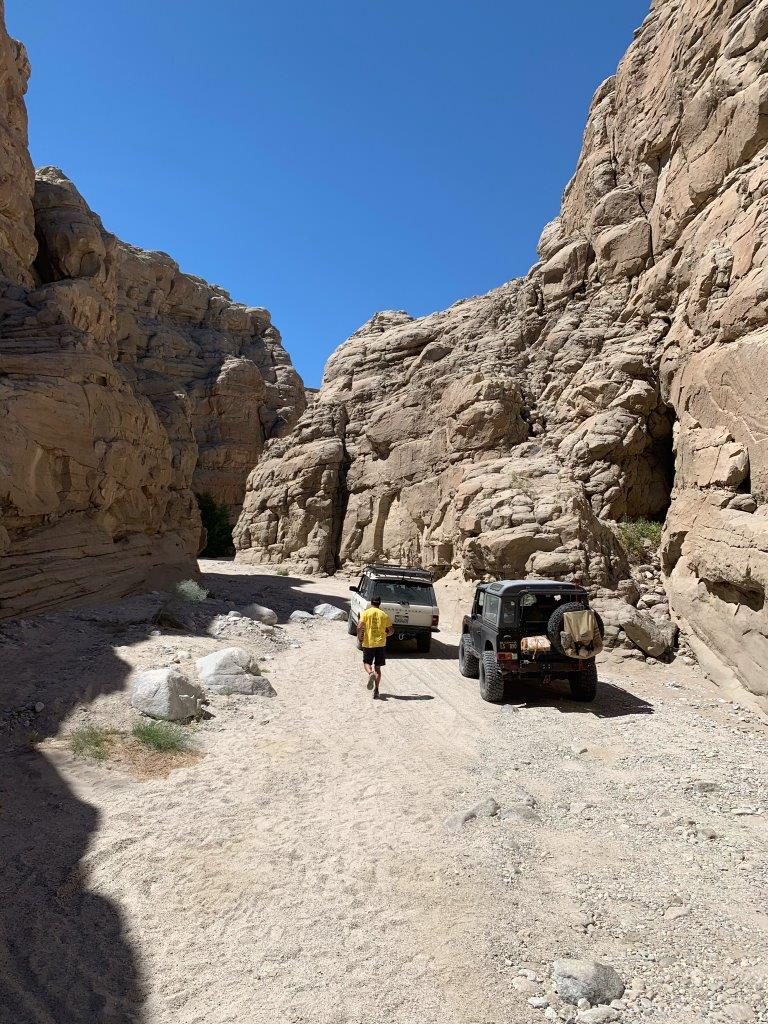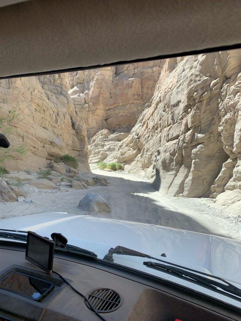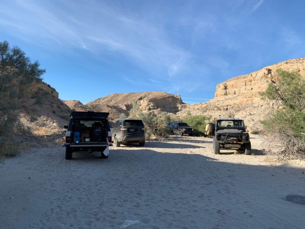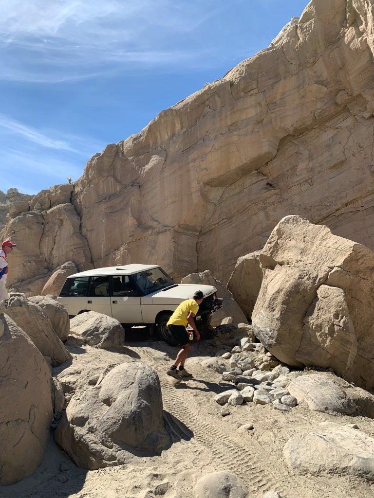 It was a hot one!!! I believe we had a total of 9 Rovers. The group met at Dudley’s where we loaded up on sandwiches and bear claws. After a quick group meeting we hit the 78. A turn on Split mountain road and onto Fish Creek where we would air down. Our first stop would be the wind caves where we would hike about a mile uphill in the heat!! Who’s idea was this anyway? At the top we huddled under shady caves and chatted for a while then made our decent and headed for Diablo drop off. Everyone made it up the first hill just fine, the second would be a different story. Big holes and loose fine sand made it challenging. At this point we decided to break for lunch and exchange some more stories and tech talk. After lunch we headed to Sandstone Canyon where we enjoyed narrow Canyon and quite a bit of shade. The first obstacle was quite narrow only a few proceeded from there, and even fewer through the “Gatekeeper”. Some came along for the ride and some stayed behind and enjoyed some refreshments. It was pushing 4:00 at this point so we headed decided we had enough and headed to camp. Our campsite was perfect, shaded and white soft sand where you just had to go barefoot, (spotted a scorpion the next day so won’t be doing that again). Food, Campfire and a good time was had by all.