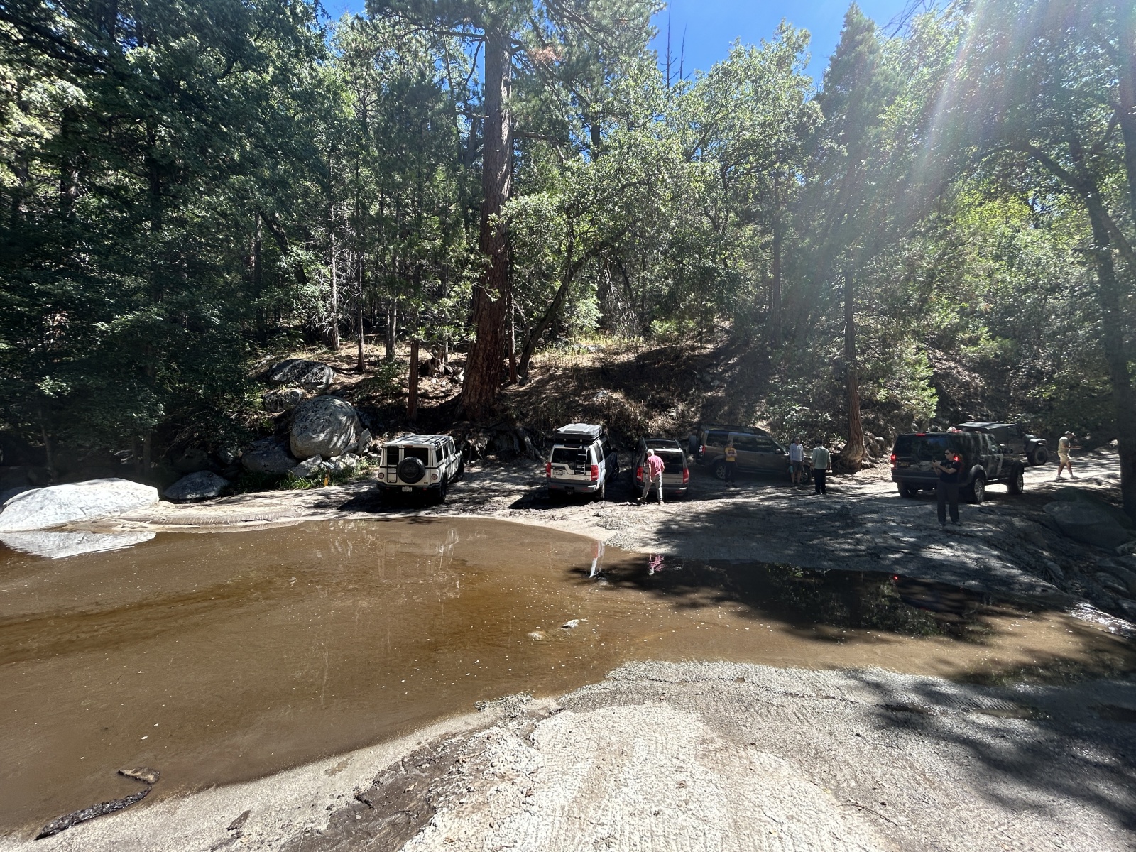 The September club trip was a fun scenic day trip to Idyllwild via Hemet.  We navigated paved roads until tuning onto the Bee Canyon Truck Trail and enjoyed the scenery while we climbed up the mountains. The fire roads were well maintained, but a precipitous drop off to one side kept everyone focused during the drive. A short snack break took place at a nice crook in the road that sported a small pond and waterfall, then we pushed on to Idyllwild for a proper lunch! (do you get the picture that we are food motivated in addition to adventure seekers?)